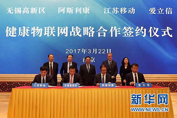 發布時間:2017-07-20 16:30:06 | 來源:新華網 | 作者:佚名 | 責任編輯:胡俊3月22日,無錫高新區、阿斯利康、中國移動江蘇有限公司、愛立信共同簽署《健康物聯網戰略合作備忘錄》,四方宣布開啟健康物聯網領域的深度合作,激發無錫健康物聯網產業的創新活力與發展潛能,未來將逐漸把無錫創新經驗推廣到江蘇乃至全國,推動智慧醫療造福更多患者。