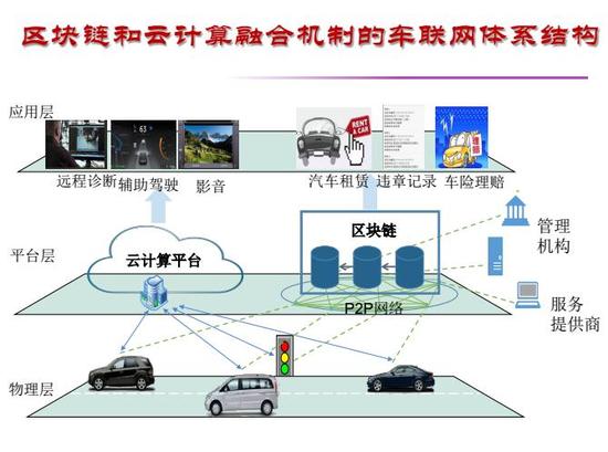 通過融合機制基本上能夠解決車聯網兩個很大的問題:一個是訪問控制的問題。我們剛才說車聯網最大的問題是數據的安全,在區塊鏈和云計算的融合下,就能夠實現數據的分級控制問題,通過應用級別和應用場景,可以利用區塊鏈和云計算不同的訪問控制機制,來實現不同級別的訪問控制方法。