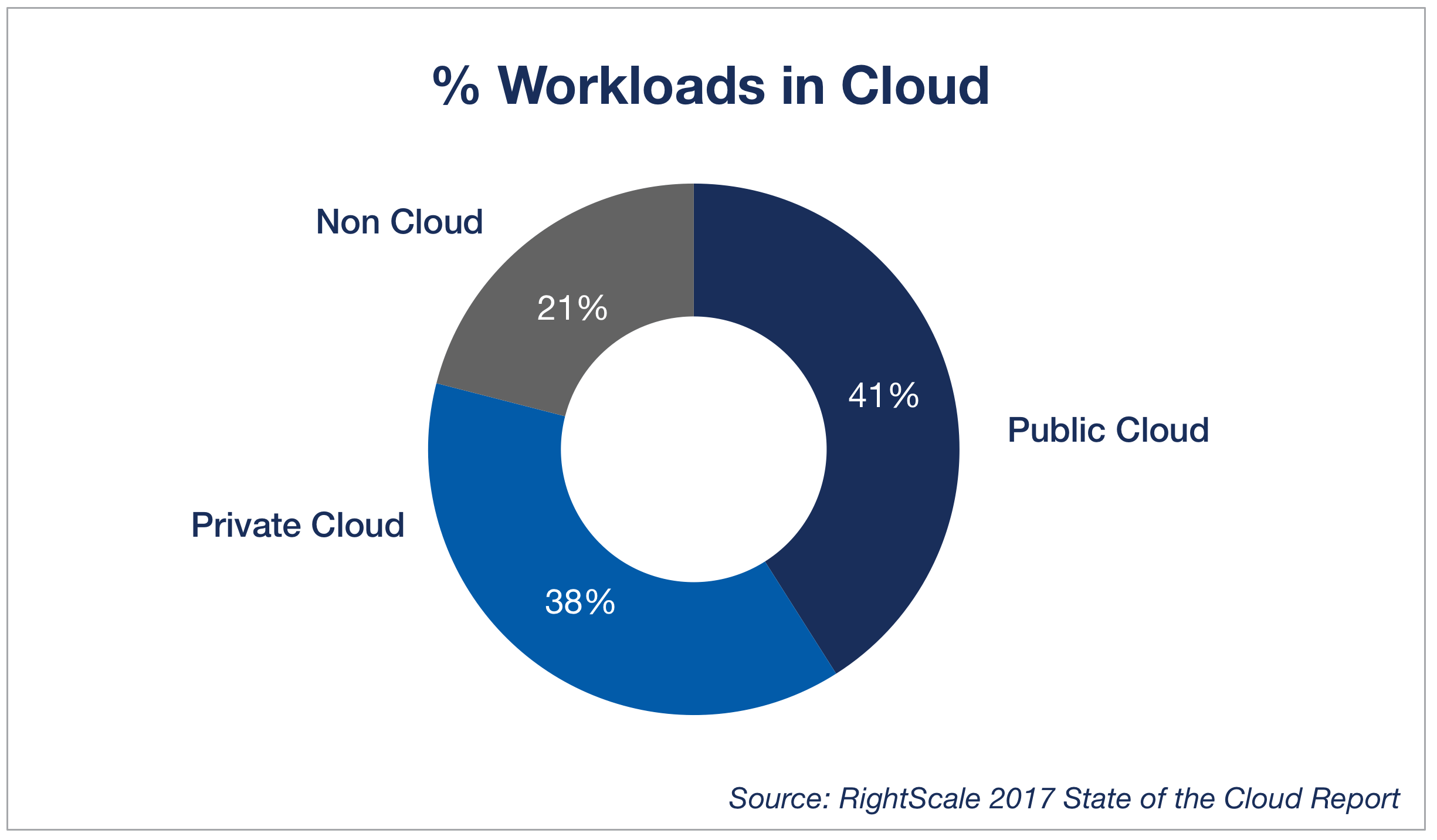 大企業在云計算中占有75%的工作負載,私有云(43%)與公共云(32%)相比。中小型企業在云中運行83%的工作負載,公共云(50%)與私有云(33%)相比更多。