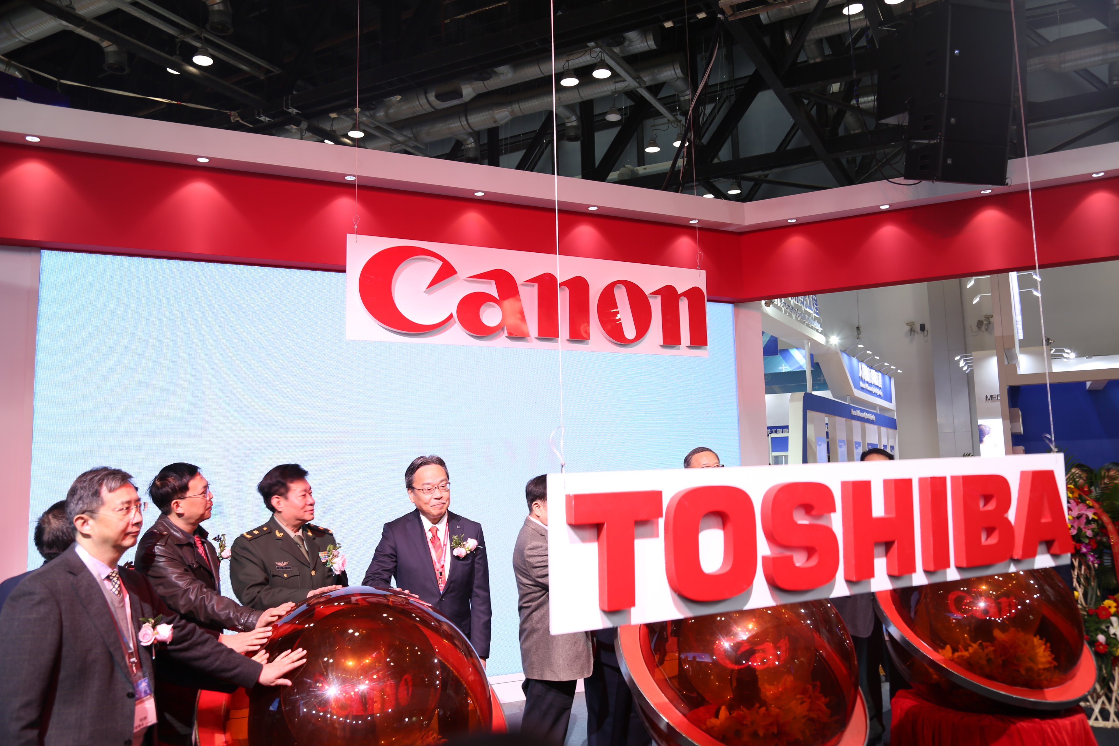 23日,東芝醫療系統(中國)有限公司正式變更佳能醫療系統(中國)有限公司。圖為變更儀式現場。(胡俊 攝)