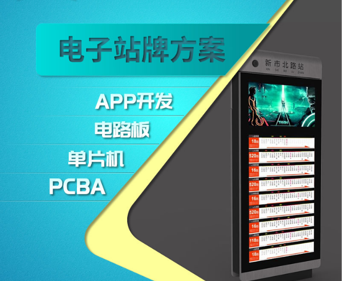 3、四行LCD雙色屏顯示豐富文字內容:可顯示離當前站臺最近的公交車位置,也可以及時顯示公益廣告或交通信息通告等;