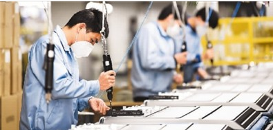 在位于廣州開發區的廣州創維平面顯示科技有限公司生產車間內,工人們在流水線上作業。新華社記者鄧華攝