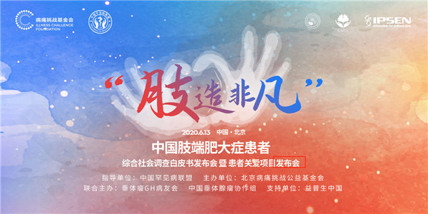 發布時間:2020-06-15 16:58:04 | 來源:中國網 | 作者: | 責任編輯:李媛6月13日,由北京病痛挑戰公益基金會主辦,中國罕見病聯盟指導,中國垂體腺瘤協作組和垂體瘤GH病友會聯合主辦,益普生支持的《中國肢端肥大癥患者綜合社會調查白皮書發布會暨“肢造非凡”患者關愛項目啟動》儀式在北京舉行,并在線直播,數千名觀眾在線上進行觀看。