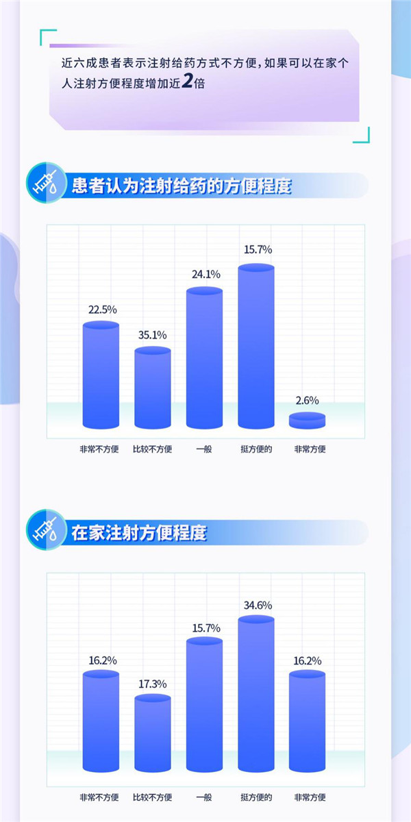 調查中也顯示,多數患者認為目前的注射給藥方式非常不方便或比較不方便。垂體瘤GH病友會負責人柳春青說:“為了開藥用藥頻繁異地就醫,需要患者付出很多的時間和金錢,同時也占用了醫療資源。很多患者很年輕,需要正常的工作和生活,也并不愿意同學、同事知道自己患病。藥物在很多藥店憑處方可以買到,如果可以在家自行注射藥物,就能給患者節省了很大間接醫療支出,提高生活的質量?!?/p>