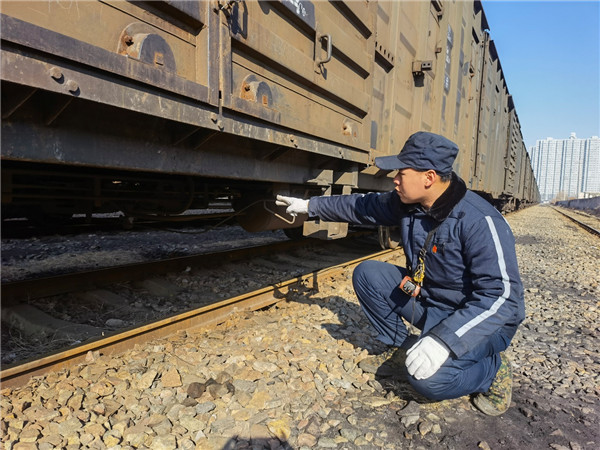 又是平凡的一天,西場車間連結員張楨豪,開始了他一天的工作。手握閘鏈確認撂緊,手指制動缸活塞確認收回,眼看閘瓦抱緊車輪……為了保障春運和冬奧會期間的安全,為了暢通電煤運輸“大動脈”,他重復著這個動作,行走于逐個股道間,確認著每一組停留車的防溜。
