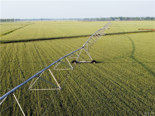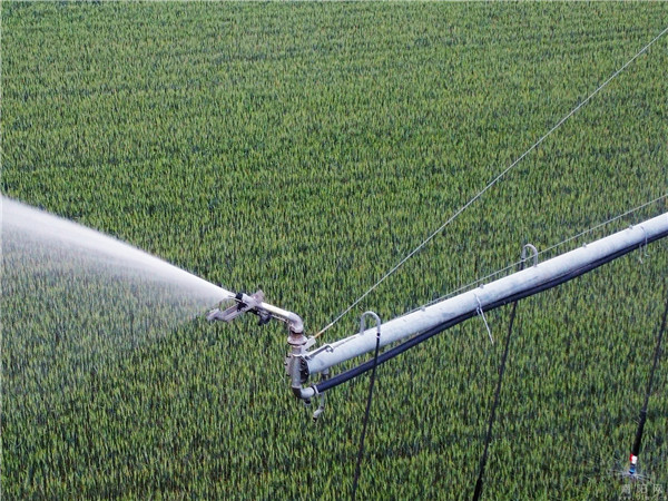 據了解,該指針式噴灌機是一種大型自走式噴灌機具,長400米,作業灌溉面積達750畝,且噴灑均勻,節能、節水,實現了小麥田間管理的科學性、精準性。(通訊員 時君洋 李樹嫻 )