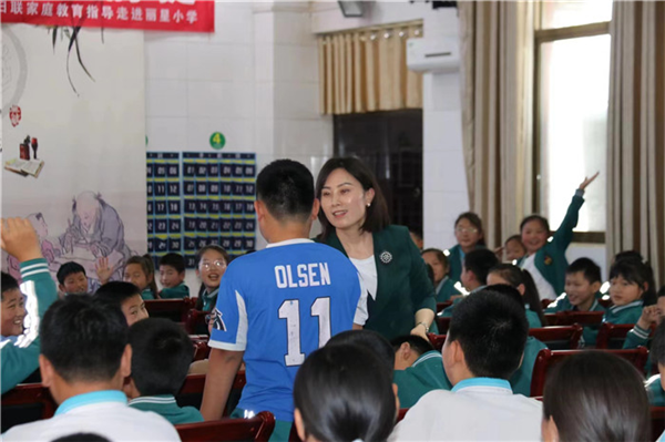 麗星小學的禮堂里,通許縣人民檢察院黨組成員、副檢察長楊健,通許縣婦聯主席于寒冰、通許縣人民檢察院第五檢察部副主任馬攀攜家庭教育指導師共同為該校師生和家長代表送上一份特殊的“六一”禮物——法治宣傳大禮包。組織孩子們觀看普法微電影《陽光校園拒絕欺凌》的同時,家庭指導師張馨元通過一個又一個生動有趣的小游戲,開展了一場別開生面的家庭教育指導,指導家長們學習如何進行有效的親子交流,學會依法帶娃、科學育娃,現場氣氛十分熱烈。