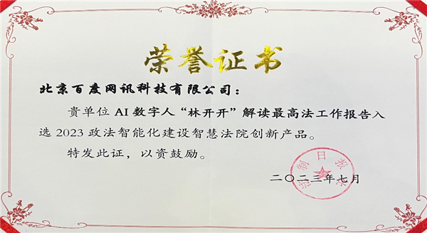 百度AI數字人“林開開”獲全國智慧法院創新獎