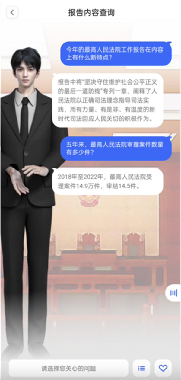百度服務體驗中心產研負責人楊瀟茜表示:“數字人林開開集合多模態交互3D數字人建模、自然語言處理和大模型等前沿技術,利用AI深度學習和創作能實現了‘看播報、查信息、提建議’等多重功能,模型精細度高,可以讓交互變得自然生動,能夠像真人一樣和用戶展開多輪流暢對話。通過數字人交互和講解,方便公眾迅速便捷查看最高人民法院工作報告相關內容,充分了解背景信息,創造了數字人解讀工作報告新范式。最重要的是,該項目開發成本比較低,相比較其他數字人項目,更具有可復用性?!?/p>