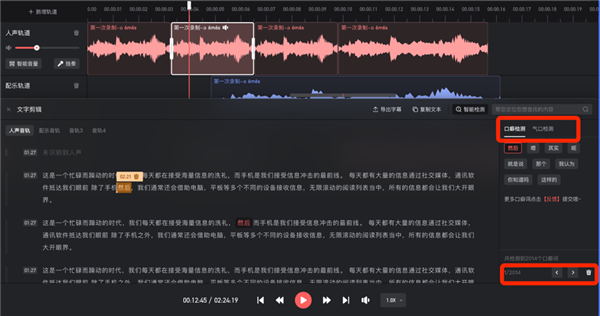 王冬梅介紹,播客現在是用戶消費音頻內容非常重要的一種形式,但播客很像朋友聊天,會在朋友聊天中聽到一些干貨、有共鳴的東西,播客內容不像課程,它沒有文稿,做后期剪輯的時候要基于很長的音頻內容來制作節目。通過云剪輯中的語音識別技術,喜馬拉雅幫助播客主把音頻識別轉化成文字,然后播客主就可以像編輯word文檔一樣輕松編輯音頻,你刪除了某幾個字兒對應的音頻也刪掉了。所以它的這種使用的便捷性,包括它可以幫助播客主生成這種show notes然后包括它可以一鍵識別你的氣口聲,你的口水音,并幫助自動刪除。