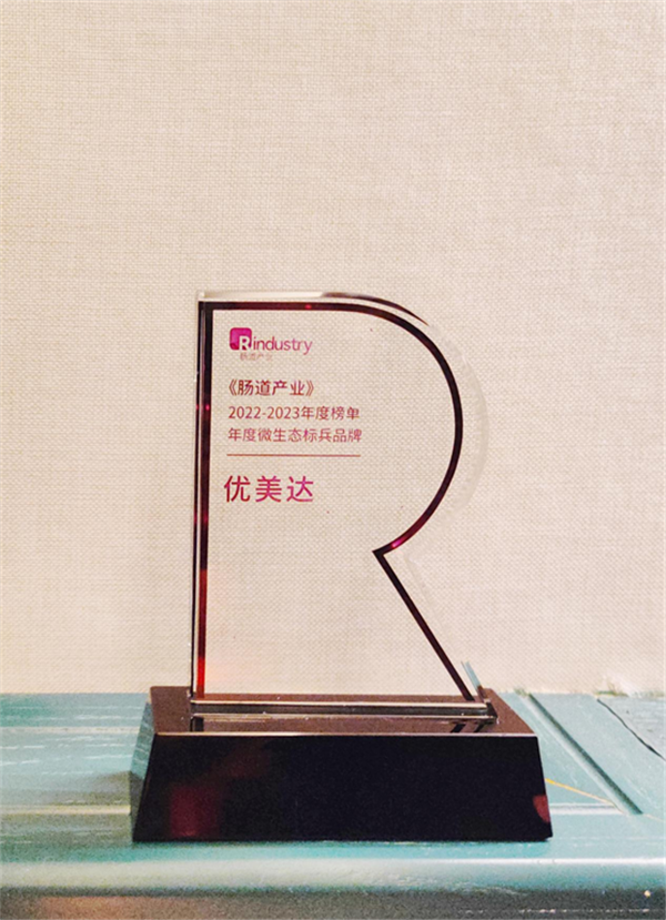 從第一篇關于腸道菌群的科學發現到最后產業應用,用了12年。從菌株資源篩選、反應流程到嚴格的實驗驗證,包括嚴謹的臨床試驗,厚積而薄發,十二年磨一劍,專業實力終被見證?;顒赢斕?,中國腸道大會重磅發布了《腸道產業》年度榜單,優美達以硬核的專業實力,被授予“《腸道產業》2022-2023年度榜單年度微生態標兵品牌”。