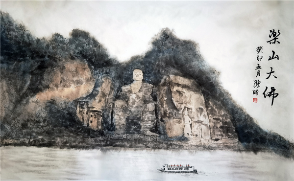 樂山大佛 45 x 97 CM紙本水墨設色