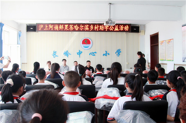伴隨著暑期的尾聲,學生們整理好身心,準備迎接嶄新的學期。長嶺中心小學地處呼蘭老城區邊緣,屬城鄉結合部,教育對象主要是當地農民的子女,是一所集周邊村屯學生于一體的小學。學校內70%學生是留守兒童,大多數與老人生活在一起,家里勞動力少、人口多,收入低微?!案兄x滬上阿姨這樣的愛心企業以及媒體的到來,為長嶺小學留守兒童健康成長、提升學校辦學品質起到巨大的作用。感動之余,學校也將勵精圖治,嚴謹辦學,把學校辦成一所讓社會滿意、家長滿意、學生滿意的學校。學生們也將把滴水之恩化作自強不息、奮發學習的動力,用優異的成績回報社會,將這愛的事業傳承和發揚下去?!遍L嶺中心小學校長宛明輝表示。在捐贈儀式現場,孩子們接過嶄新的書包和文具,幸福的笑容在他們臉上綻放著。