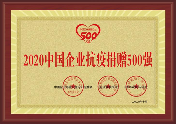 2020年,新冠肺炎疫情席卷中國大地,為與國家和社會共渡難關,中植醫療科技集團旗下鄭州中植植發醫院為抗疫捐贈物資善款100萬元。2020年10月,鄭州中植植發醫院榮獲“2020年中國企業抗疫捐贈500強”。在此之前,中植醫療科技集團還曾榮獲2019年中國企業扶貧100強、2019年中國慈善公益好企業;在此之后,又再次榮獲2021年中國企業抗疫捐贈500強、2021年中國企業慈善公益500強、2022年中國服務業民營企業慈善公益500強等公益慈善獎項。