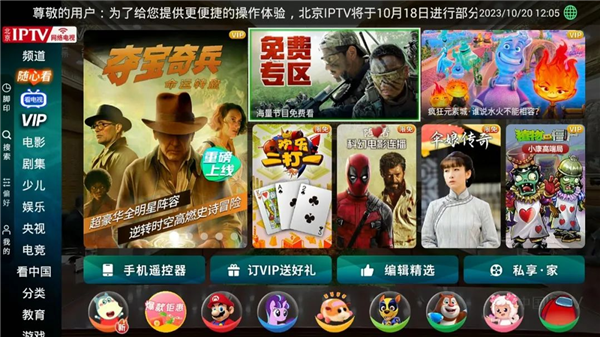 為方便您快速找到免費點播內容,北京IPTV首頁打造“免費專區”,包含免費電影、電視劇、娛樂、少兒等節目,內容總量超過5000余部,提升您的日常觀看體驗。