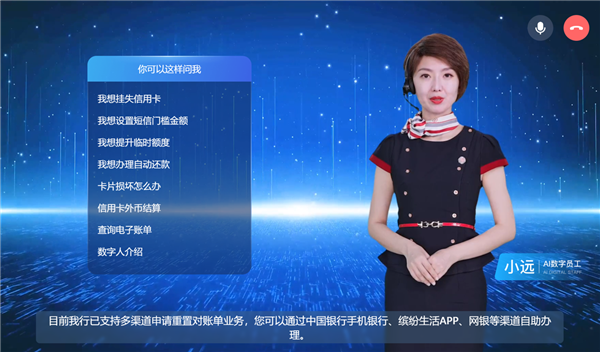 「數字員工」是一款基于多種AI技術生成的智能化產品。形象可選也可定制,輕松駕馭多種平臺場景,如應用在實體接待大廳為用戶進行產品推薦,實時應答精準識別客戶意圖,滿足不同行業的人機互動需求。