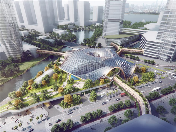 金融城站綜合交通樞紐項目位于廣州國際金融城內核心地段,建筑方案融合進金融城 “方城、曲苑、翠島、玉帶”空間格局,以晶瑩的玉帛造型,詮釋魚與玉的靈動關系,取名“錦鯉饌玉”,傳承嶺南文化精粹。