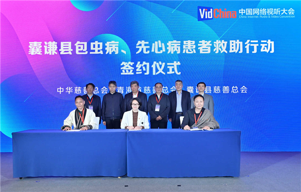 青海囊謙縣是國家廣播電視總局定點幫扶縣,為進一步守護當地居民的健康,創造更加幸福美好的生活,在廣電總局的見證下,中華慈善總會與青海省慈善總會、囊謙縣慈善總會進行三方簽約,未來,他們將整合資源,攜手共進,努力降低包蟲病及先心病在當地的發病率。