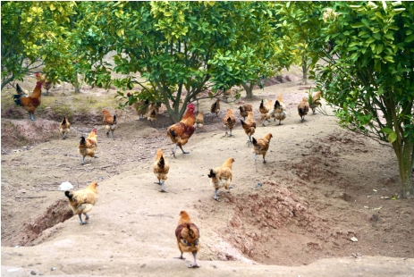 在三會鎮賈家壩村集體經濟養殖場,放眼望去,成群結隊的“跑山雞”穿梭在山林之中,悠閑地覓食,伴隨著養殖場工作人員“咕咕”的吆喝聲,毛色光亮的“跑山雞”從林子四面八方聚攏而來,場面很是熱鬧。