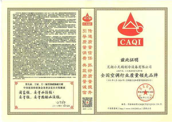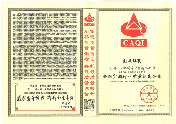 近日,小天鵝空調斬獲由中國質量檢驗協會頒布的“全國空調行業質量領軍企業”“全國空調行業質量領先企業”“全國空調行業質量領先品牌”以及“全國質量檢驗穩定合格產品”四項權威大獎。
