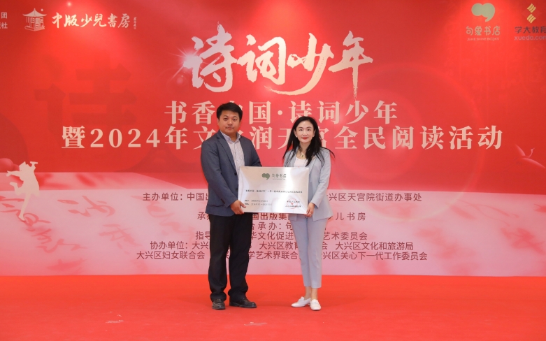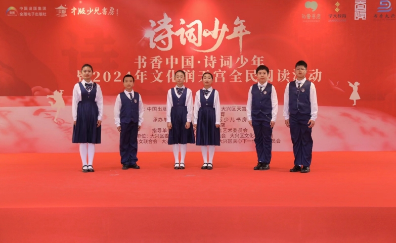 4月19日上午舉辦的“書香中國·詩詞少年”暨2024年文化潤天宮全民閱讀活動由中華文化促進會語言藝術委員會指導,中國出版集團·金版電子出版社、大興區天宮院街道辦事處和學大教育集團聯合主辦,學大教育·句象書店承辦。