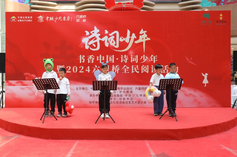 4月21日上午的“書香中國·詩詞少年”暨2024年六里橋全民閱讀展演活動同樣由中華文化促進會語言藝術委員會指導,由中國出版集團·金版電子出版社、豐臺區六里橋街道辦事處和學大教育聯合主辦,學大教育·句象書店承辦,此次活動還得到了銀座和諧廣場、智慧熊幼兒園、蓮香園社區及望園社區的大力支持。