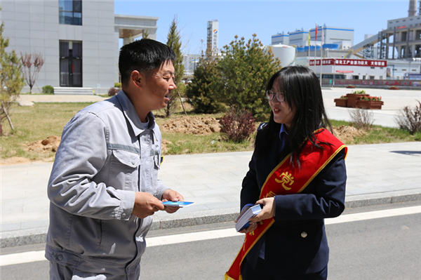在陜西延長石油榆神能源化工有限責任公司活動現場,公司職工帶領稅務青年干部深入生產廠區進行實地參觀,介紹了榆神50萬噸/年煤基乙醇項目的概況和意義,并讓大家近距離接觸乙醇等產品樣品,幫助稅務干部充分了解公司的項目進展、生產流程以及產品特點。稅務青年干部向公司職工宣講個人所得稅專項附加扣除的項目、申報流程以及常見問題,現場演示個人所得稅匯算清繳操作。