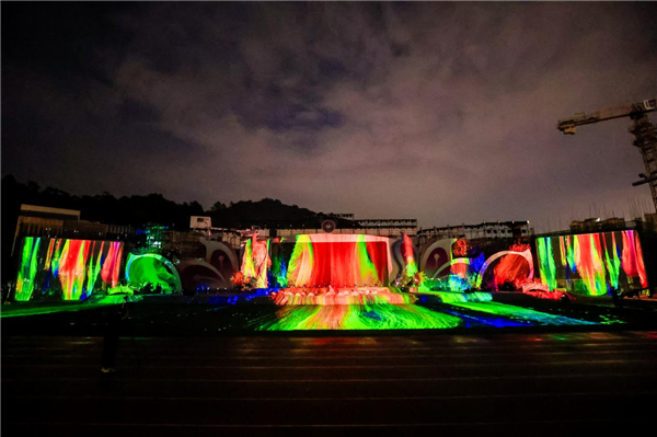 本屆嘉年華系列活動開幕式的舞美設計有一個十分耀眼的亮點,就是黑科技全息技術在舞美中的巧妙運用。導演組將全息技術與傳統舞美、聲光電技術巧妙融合,貫穿全程,讓夢幻般的視覺展示效果與節目內容完美融合,時而是絢麗的桃源勝景,時而是遼闊的草原,時而如奔騰的黃河,時而飛龍在天……通過高科技打造三維立體效果,讓整個舞臺顯得場面恢宏、炫酷多彩、美輪美奐,在富有視覺沖擊力的同時,也營造了歡樂熱鬧的氛圍,讓人樂在其中,陶醉其間。
