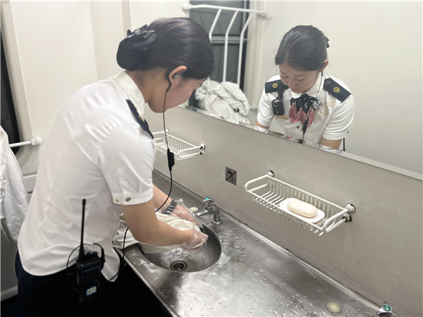 周莉娟立即趕到6號包房查看情況,發現老人正若無其事坐在23號下鋪,詢問其身體是不是有不適?老人說,“我沒事,謝謝!”看著老人對答如流,又看到濕透的床單,周莉娟心中有了答案。通過查看旅客信息,知道老人姓黃,1952年生,上海人,70多歲的老人小便失禁尿在鋪上,對于乘務多年的周莉娟看來很正常。周莉娟詢問老人是否帶了換洗衣物,老人說沒帶,周莉娟便取來一條床單給老人墊在身下讓其休息,并將老人對面的旅客調換到別的包房,然后把尿濕的床單、褥子拿去洗晾,收拾完這些,已經是2時。