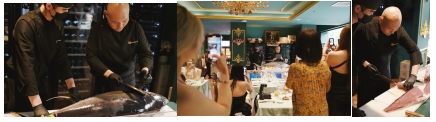 首創推出的【法式金槍魚5道品鑒下午茶】由Umami鮮味俱樂部主廚Simon(張鍇)和LINK雜志主理人ZIK(李直)與共同研發、創作,為參與者帶來黃鰭金槍魚除傳統刺身料理外的全新烹飪技藝:將剛剛從馬沙爾群島空運來的冰鮮黃鰭金槍魚結合法餐精湛、細膩的做法,以5道式的法餐流程呈現紅菜頭腌制金槍魚赤身、金槍魚醬凱撒沙拉、黃油脆殼烤金槍魚腹肉配藜麥薄荷、金槍魚番茄意大利面、金槍魚冰激凌。于此同時,侍酒師精心挑選巴斯克來自拉菲羅斯柴爾德家族葡萄酒、夏洛克霞多麗干白葡萄酒等不同飲品供其搭配鮮美的金槍魚肉享用。