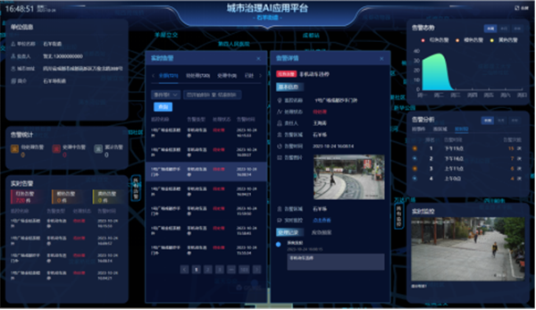 鐵像寺水街街區城市治理AI管理平臺采用國產化AI算力,實現視頻分析、事件預警,預警事件處置及街道范圍內的預警事件可視化呈現等系統平臺功能。針對共享單車,非機動車違停,垃圾亂丟,占道經營等門前五包重點關注的事件實現了智能化的管理。目前在系統運行過程中,累計發現各類事件200多起。在此基礎上構建多元主體參與的3段式共治機制:街道、商家、物業達成3方共治協議,AI平臺識別異常事件后通過短信通知商家,商家3分鐘內沒有處置則通知物業,物業15分鐘沒有處置則通知城管執法人員。通過3段式共治機制,利用數據分析、圖像識別、信息網絡搭建,高效、精準、及時地找到街區存在的問題,并進行重點治理,為共同創建石羊街道最美街區貢獻智慧力量。