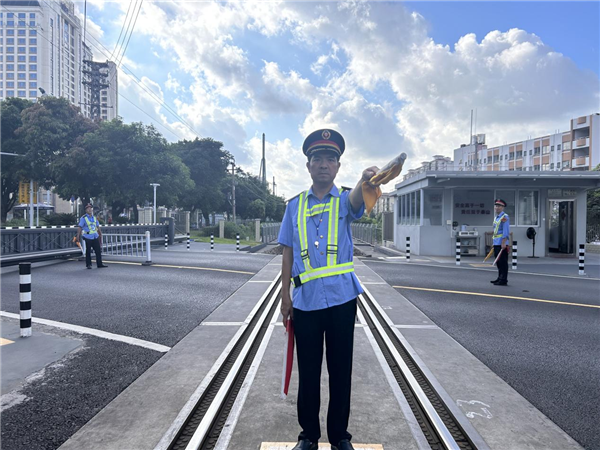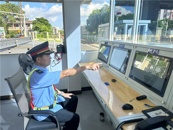 這樣的場景黃華珍已經經歷過無數次,無論刮風下雨還是高溫酷暑,只為確保列車安全平穩通過道口。