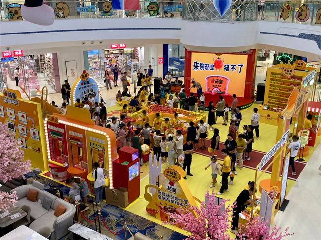 超大番茄氣膜、城市打卡墻、巨型茄皇桶等元素充斥著大會現場,花樣百出的互動游戲一經啟動就將現場氛圍燃向高潮。幽默新奇的泡泡秀表演、激情四射的主播、甜美陽光的禮儀小姐姐,在大會現場烘托著熱情洋溢的氣氛;趣味十足的游戲區、絡繹不絕的試吃體驗,吸引著絡繹不絕的消費者。