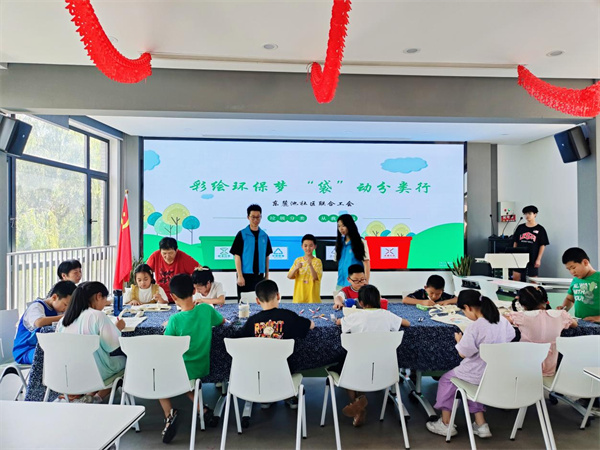 東麓池社區組織開展“彩繪環保夢,‘袋’動分類行”手工DIY環保袋活動?;顒蝇F場,志愿者向孩子們講解日常生活中垃圾分類的意義和重要性,隨后大家拿起手中的畫筆在環保袋上涂鴉,“有害垃圾桶是紅色、可回收物桶是藍色的、易腐垃圾桶是綠色的、其他垃圾桶是灰色的”,顏色各異的畫筆將一只只垃圾分類環保袋完美呈現。