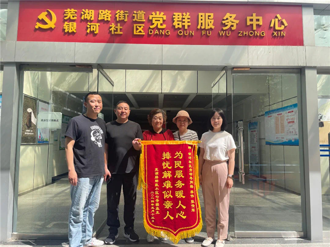 “感謝社區,解決了我們居住的大難題?!苯?,合肥市包河區蕪湖路街道銀河社區郵區中心局小區居民唐大姐代表7號樓全體業主向社區送去錦旗。