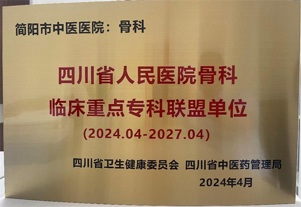 簡陽市中醫醫院通過參與四川省人民醫院骨科臨床重點??坡撁说尼t、教、研全方位交流合作,不斷培養骨科人才,提升診療技術,提高醫療質量,為廣大患者提供更優質、高效的醫療服務。