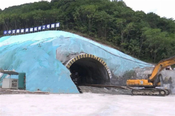 中交路建白臨2工區項目松嶺2號隧道左洞出口順利進洞