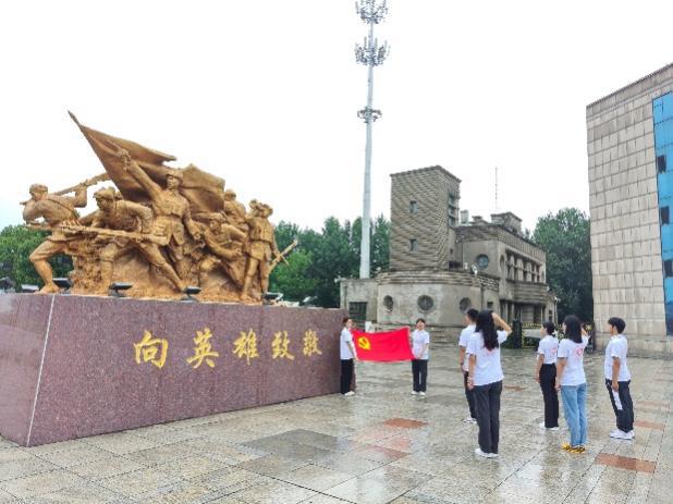 在英雄廣場上,支部黨員還遇到了跨越一千多公里到四平參加戰友聚會的退伍老兵。老兵與黨員們談起了當年參軍入黨的經歷,他們用和藹的語氣、感人的故事和簡明的道理給支部黨員上了一堂生動的黨課。隨后,在“向英雄致敬”雕塑前,全體黨員重溫入黨誓詞,鞠躬致敬并立下堅定誓言:“無論時代如何變遷,我們將繼承先烈們的愛國主義精神和革命英雄主義精神,接過歷史的接力棒,為祖國和人民譜寫出更加輝煌的篇章!”