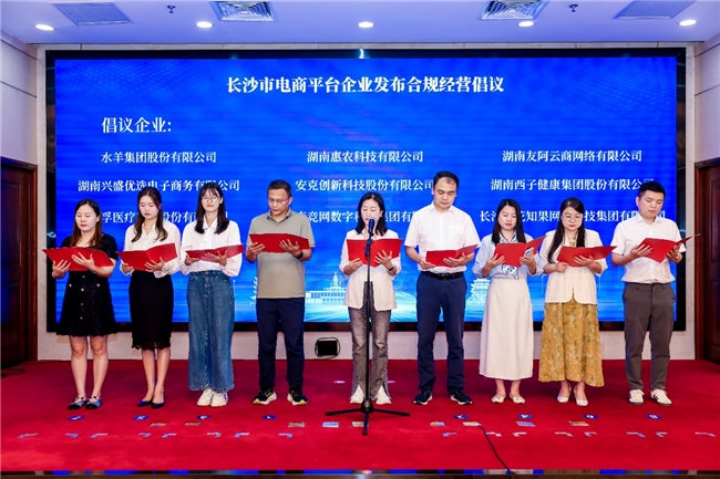 此外,長沙本土的水羊集團、惠農網、友阿云商、興盛優選、安可創新、西子健康、可孚醫療、湖南競網、知花知果等9家電商平臺企業,共同發布合規經營倡議,明確“堅守法律底線、保障商品質量、維護公平競爭、履行社會責任”四大承諾,以行業自律為網絡交易市場保駕護航。