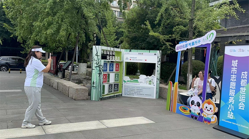 世運會舉辦時正值盛夏,上午10點,太陽就已把柏油路曬得發燙,連風吹過都帶著熱氣,下過暴雨的地面更是像煮開的水般冒著“氣兒”??偝邪尽靶枪庖鎰印钡?5人專項小組,嚴格按照工作時間駐守鐵像寺水街志愿服務小站,每天上午9點多,隊員們就提前到崗:將提前備好的藿香正氣液、救急包、飲用水整齊擺上便民桌,打開空調,最后扛著寫有“志愿服務小站”的標牌放到門口顯眼處,確保10點一到就能準時服務。