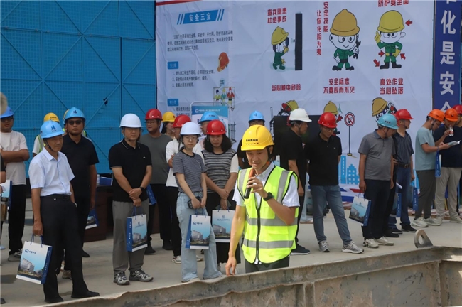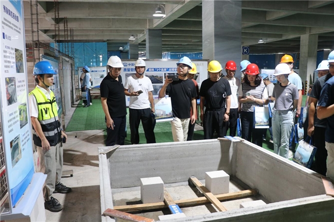 觀摩期間,與會代表深入施工現場,全面了解了項目樣板引路機制與質量管控核心流程,重點考察了項目在安全管理體系建設、人員培訓、設備管控等方面的創新實踐。在主體結構、砌體施工、風水電安裝、流態固化土處理、預制板磚胎膜工藝等多個展示區,項目講解員通過系統講解與實例展示,清晰呈現了施工現場質量管理全流程與關鍵控制點。安全體驗區與特種設備管理區通過實景演示與資料展示,全方位展現了項目“安全與質量并重”的管理理念。