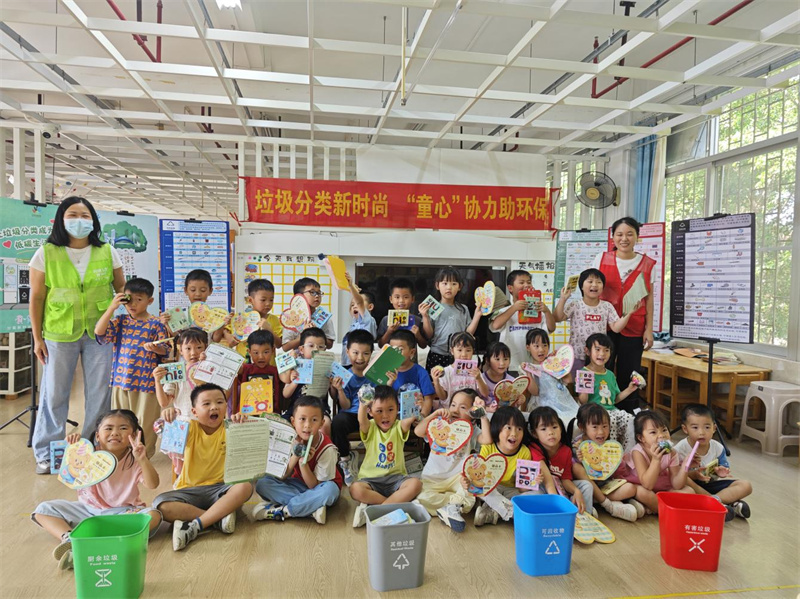 活動最后,全體志愿者與師生共同拍攝大合照,記錄下這次有意義的美好時刻。此次垃圾分類進校園活動不僅增強了幼兒的環保意識,更通過“教育一個孩子,帶動一個家庭,影響整個社會”的方式,將綠色低碳、分類投放的理念廣泛傳播,為構建美麗橫瀝注入了“童”心力量。(吳考琴)