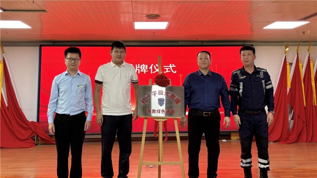 南安市衛健系統黨委委員、市紅十字會常務副會長洪詩煊,水頭鎮黨委副書記李振興、南安市海都醫院李聯敬院長、南安市紅十字極光應急救援隊隊長王天星共同為“紅十字極光救援急救綠色通道”揭牌。