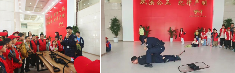 裝備展示區成了“人氣打卡點”。防彈衣、防爆盾、警用槍械等“硬核裝備”整齊陳列,民警叔叔逐一演示使用方法,講解裝備在實戰中的作用。民警們實景式的現場反恐防爆實操演練,讓小記者們深感震撼,切身感受到這份“安全感”的重量,眼中滿是崇敬。