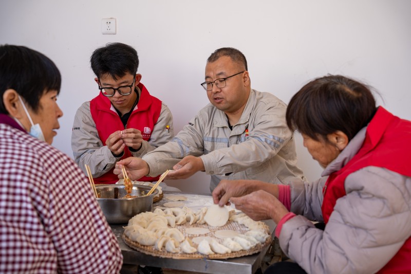 在省公司第一書記幫扶村鄆城縣丁里長街道后營村,志愿者們帶著被子、牛奶等暖心物資,走訪慰問村中孤寡老人,為老人們打掃衛生、擦拭門窗,仔細檢查家用電器線路及使用情況,詳細講解用電注意事項,詢問他們身體狀況及生活情況。隨后,志愿者們齊聚活動室,揉面、搟皮、調餡分工協作,和村民共辦熱鬧餃子宴,不一會兒熱氣騰騰的餃子就端上了桌,志愿者為行動不便的爺爺打包時,他眼眶泛紅:“這餃子比家里包的還香!”一碗碗熱餃子,一聲聲關切語,讓老人們在傳統的節日里感受到實實在在的溫暖與關懷。