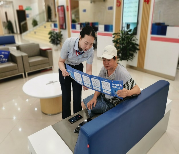 活動期間,大堂經理主動向前來辦理業務的客戶發放宣傳折頁與手冊,聚焦防范金融詐騙、打擊非法集資、保障網絡操作安全等實用知識,用通俗語言為客戶詳細講解;柜面員工則在業務辦理過程中,同步提醒客戶相關業務的防詐要點,并及時科普最新出現的電信網絡詐騙手段,將宣傳融入服務細節,切實提升客戶風險防范意識。