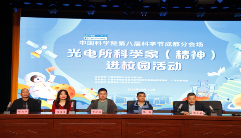 心系“國家事”肩扛“國家責”——中國科學院光電技術研究所專家走進四川省劍閣中學為厚植高中學子家國情懷,弘揚科學家精神,引導青少年樹立“科技報國”理想,2025年10月30日下午,中國科學院光電技術研究所資深科研工作者陳勇老師一行走進劍閣中學開啟了一場“心系‘國家事’,肩扛‘國家責’”科學家精神專題講座。劍閣中學尊賢廳內近400名高一師生代表參加本次活動,氣氛活躍,反響熱烈。