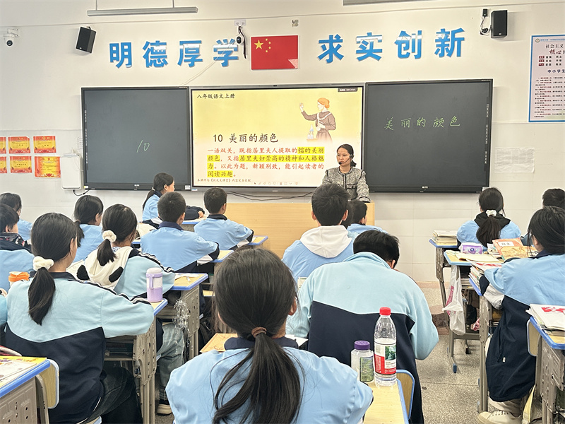 走進謝紅梅的課堂,總能感受到一種專注而熱烈的氛圍。這不僅源于學生們的認真篤學,更得益于謝紅梅善于引導的教學智慧。她的課堂從不是單向的知識灌輸,而是一場師生間的思維對話。講解新知識點時,她總能從學生熟悉的生活場景切入,用“生活中藏著這個原理嗎?”“換種思路會有新答案嗎?”這樣的問題層層遞進,點燃學生的思考熱情。面對學生遲疑的回答,她從不會輕易否定,而是笑著鼓勵:“大膽說出你的思路,我們一起探討?!痹谒陌菖c啟發下,學生們漸漸放下顧慮,課堂上舉手發言越來越積極,專注地記筆記、認真地思考例題、熱烈地參與討論,讓每一堂課都充滿知識生長的力量。