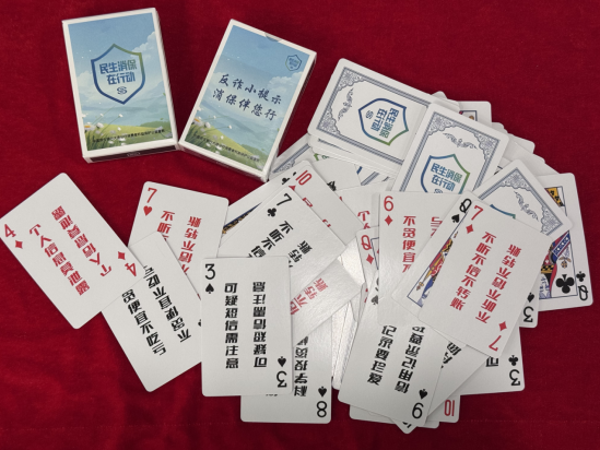 民生銀行大連鉆石灣社區支行聯合海灣社區舉辦“養老生活,樂在牌中”打滾子競技活動,活動使用該行定制的反詐撲克牌,參賽居民以牌會友,經過多輪精彩角逐,評選出前三等獎及參與獎。參與活動的李阿姨笑著說:“玩得開心,還學會了防騙和保護存款的知識,這樣的活動太有意義了!”
