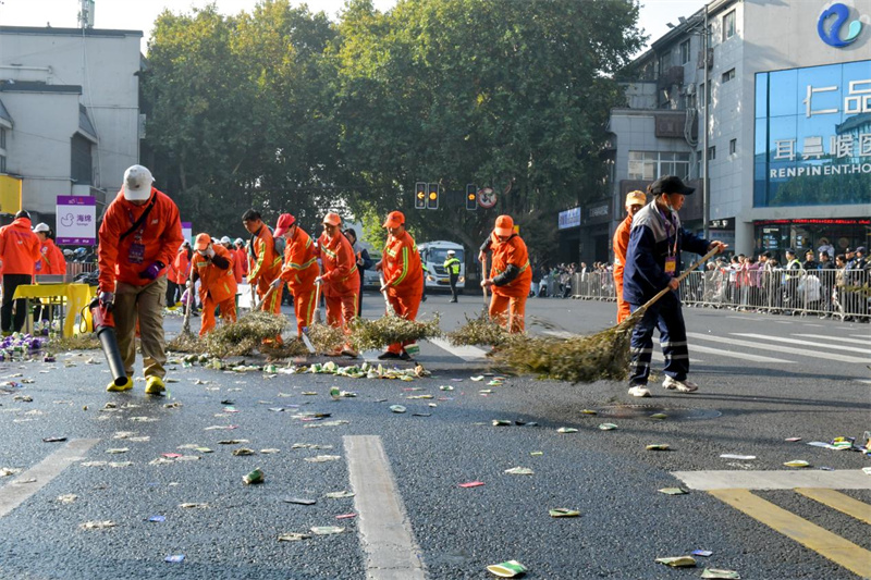 南京城管精細護航“南馬”賽后15分鐘恢復賽道整潔